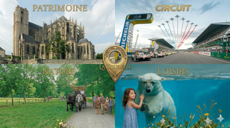 La Tourelle se situe à proximité du Circuit des 24H, du Pôle européen du cheval « Boulerie Jump », de l’Abbaye de l’Epau, d’une zone verte de plus de 400 hectares « l’Arche de la Nature », de la vieille ville du Mans, la Cité Plantagenêt et sa cathédrale élue « plus belle cathédrale de France 2023 », tout en étant proche des grands axes routiers pour un accès facilité.